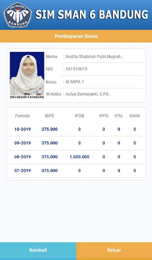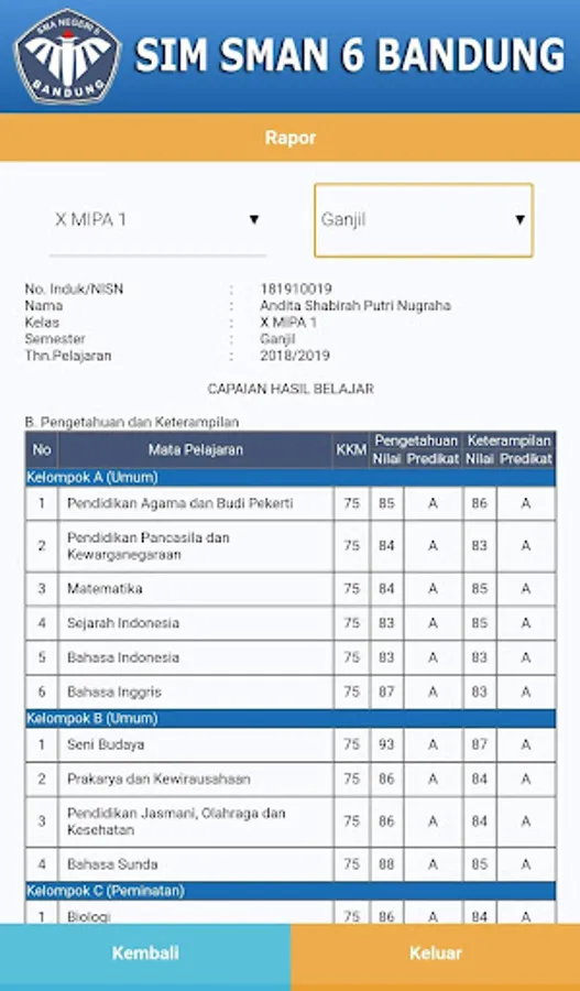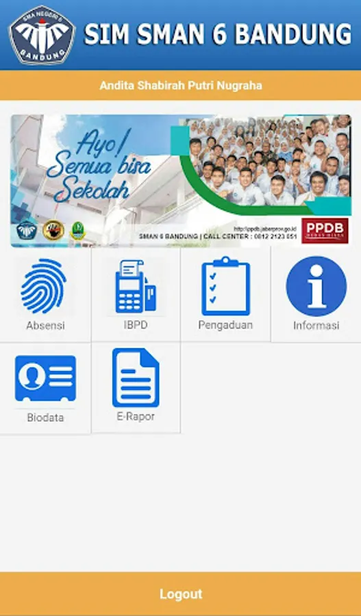 SIMPEL-6 is an application that provides information about SMA Negeri 6 Bandung. The information displayed is: