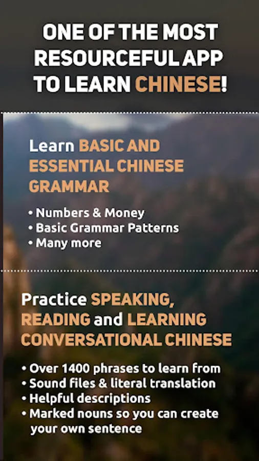 • Over 1200 phrase with sound files & helpful description to learn Chinese from