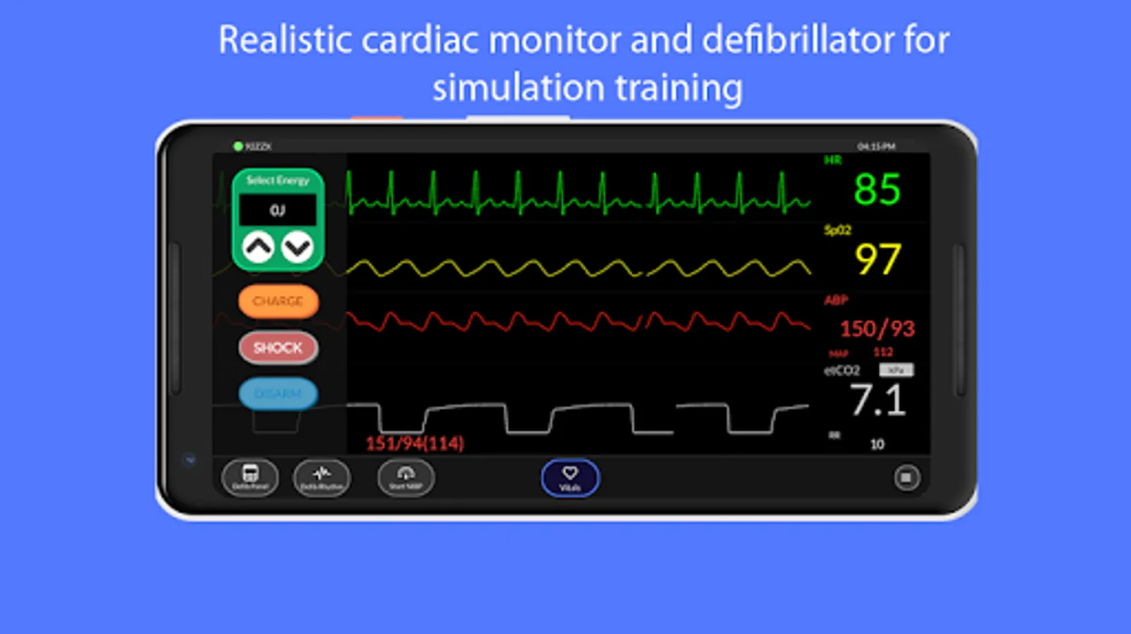 This app allows you to simulate a patient's vital signs on your tablet or phone without using expensive mannequins.
