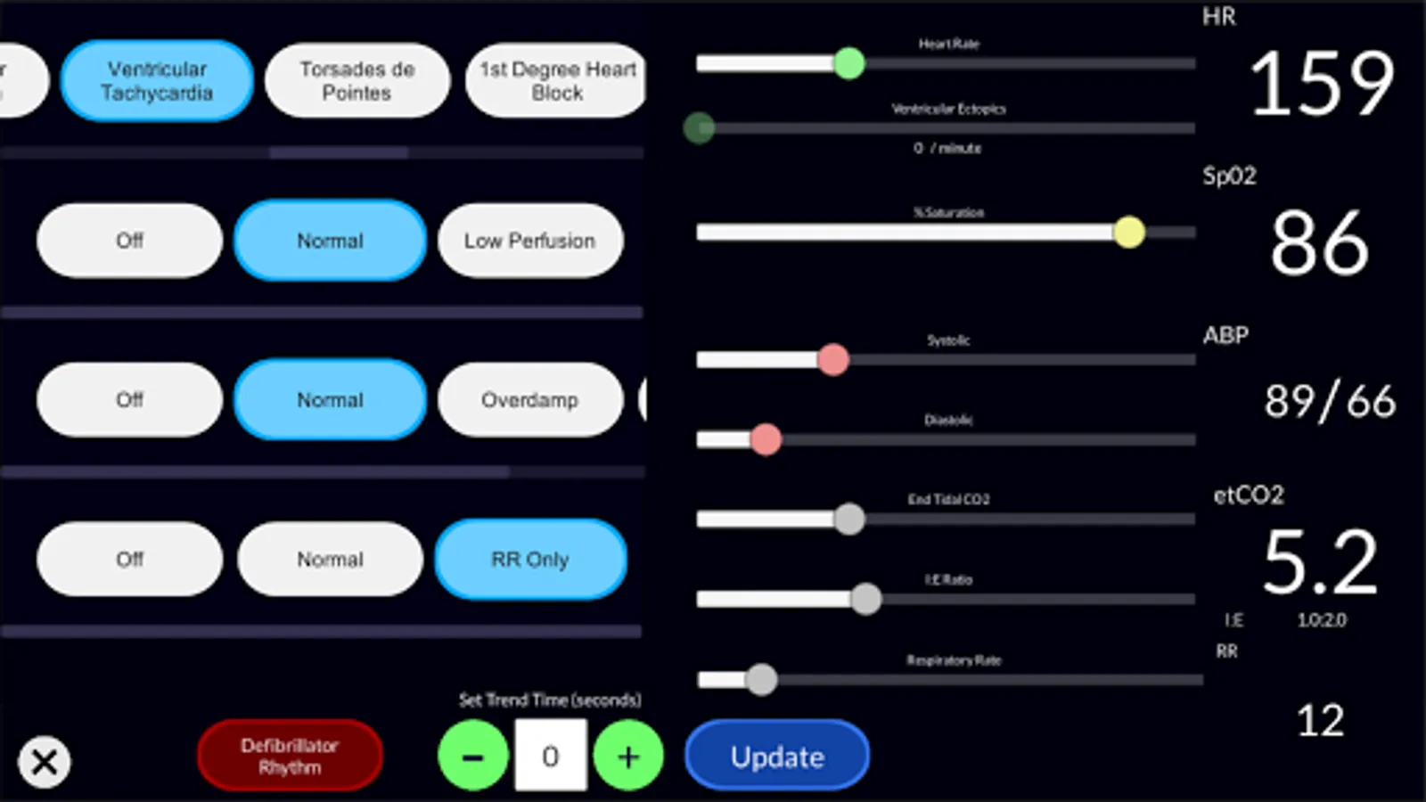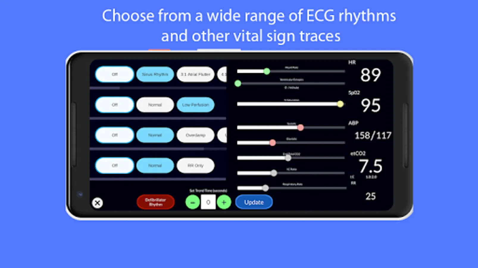 ★ Choose from 15 different ECG rhythms