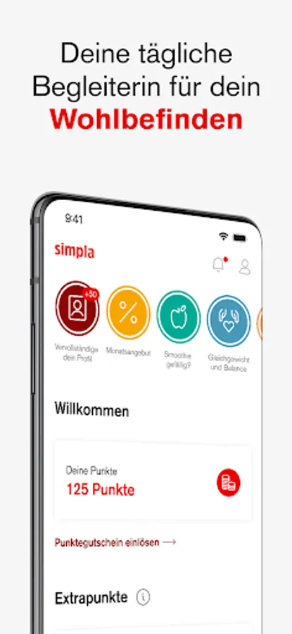• Extra points: Discover the Simpla app and get to know as many of its functions as possible – it's worth it: We reward you with extra points for your interest.