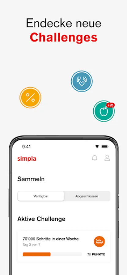 Simpla is an ÖKK health insurance offer. As an ÖKK customer, you receive twice as many points for completing challenges and for shop orders.