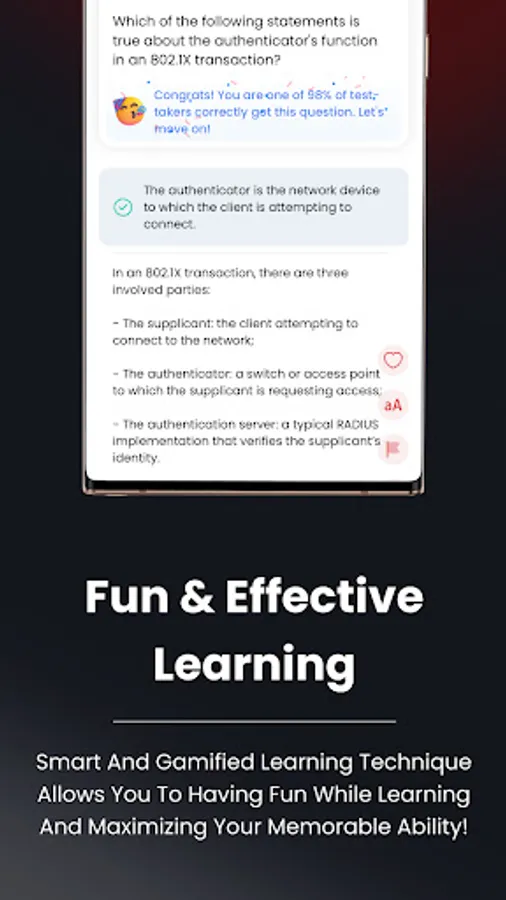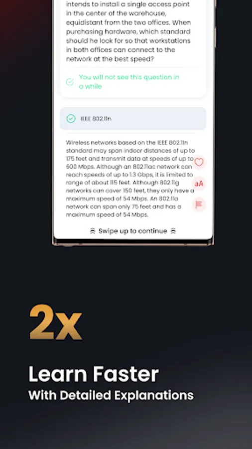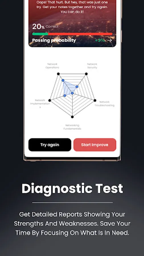 Our app includes all the domains required in the official Network+ test, namely: Networking Concepts, Infrastructure, Network Operations, Network Security, and Network Troubleshooting and Tools.