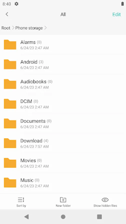 Files: View your storage stats and manage all folders on your device.