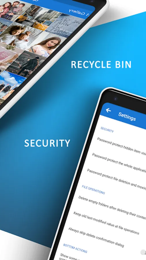 Gallery vault in this simple gallery can be set up with pin, pattern or even finger prints, so this photo gallery gives you extra protection this making A1 gallery a secure gallery app.