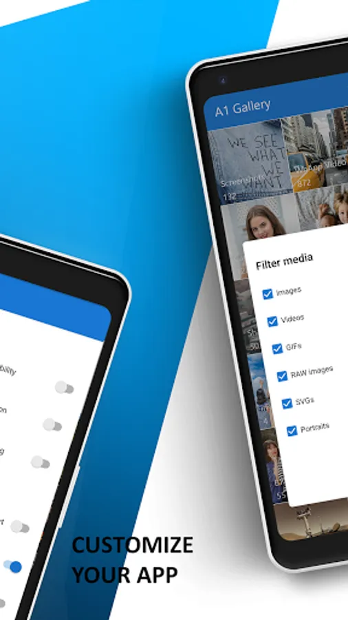 The gallery lock or gallery vault in A1 gallery protects your private pictures and videos from intruders, the gallery lock option is easily available because of the simple gallery design.