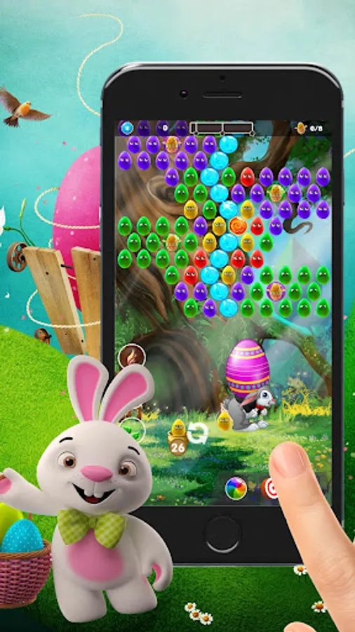 Bubble Bunny is fun new bubble shooting Easter game for young adults, adults, and seniors. Shoot color candy eggs to pop all the bubbles and crush other fun obstacles to rescue the baby chickens!