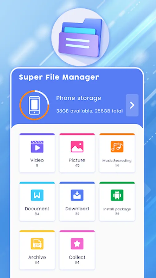 Need to obtain all file access permissions to operate files. The core function of the file manager is to manage junk files and duplicate pictures in the phone.