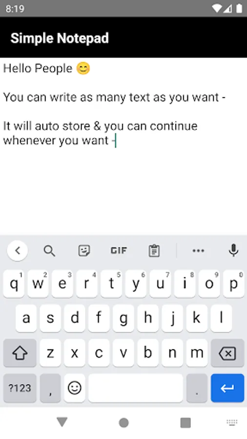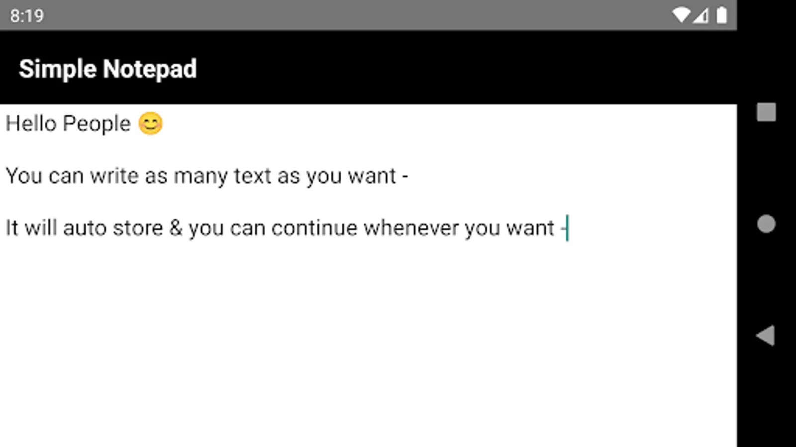 This is a simple text editor which includes features like auto-saving, The features copy, paste, cut are also available.