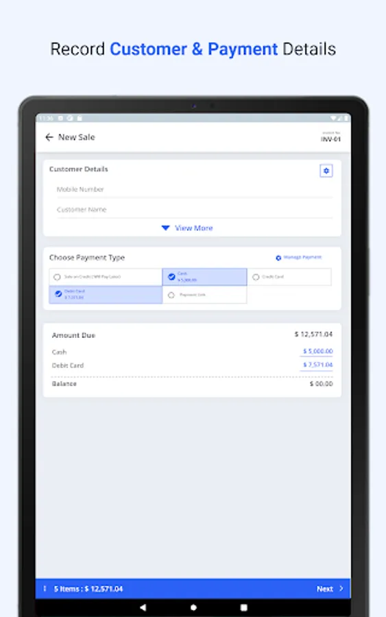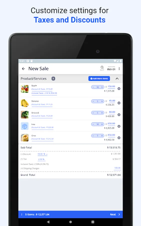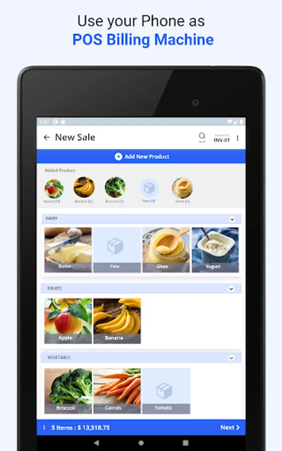 Simple POS Billing : Use your Phone as a Point-of-Sale Billing Application . Keep track of Sales, Purchases, Inventory