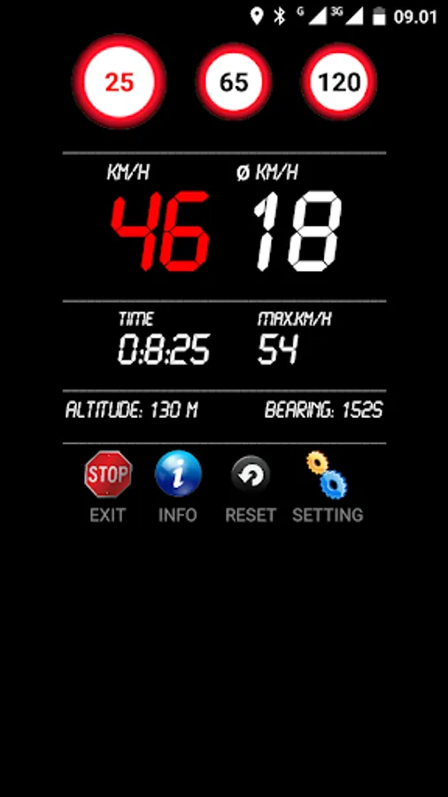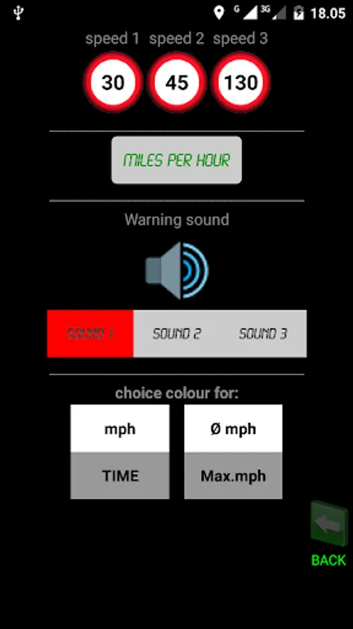 In the settings, adjust three speed limits, adjust the font colors and a sound alarm.