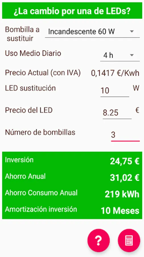 ★ Includes a small calculator to find out if it is worth replacing a conventional light bulb with an LED one