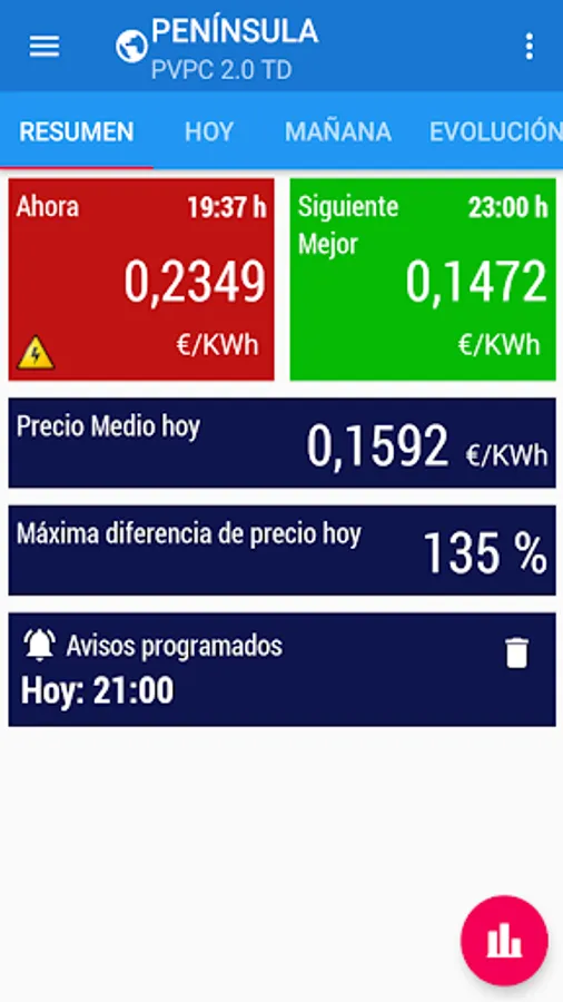 If, on the other hand, you are in the free market and have a 24-hour fixed-price rate, you should download our app 'Save on Electricity. Free market',