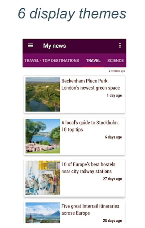 ★ Choose from six customization themes and a night mode for comfortable nighttime reading. ★ Customize the presentation of each news item in the list according to your preferences: photo on the left, on the right, or at the top.