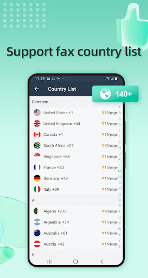 You can cover more than 120 countries/regions around the world. Very suitable for faxing with international business!