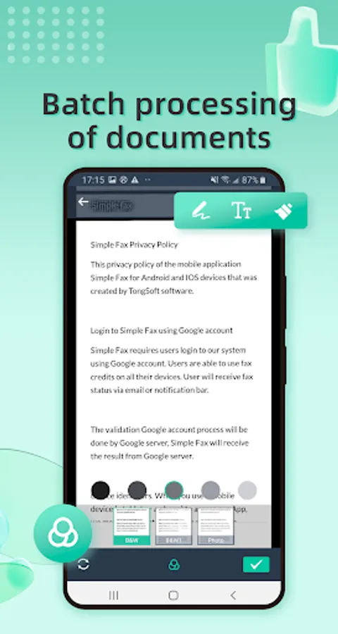 Simple Fax turns your phone into a fax machine for documents, photos, receipts and other texts. With Simple Fax, you can fax them anywhere.