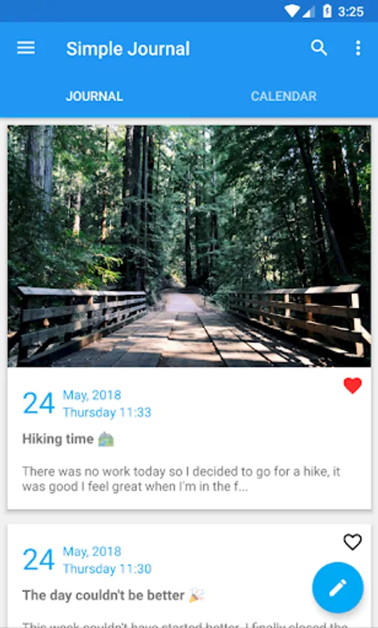 Simple Journal is an app where you can write your life experiences, thoughts and ideas in a simple way.