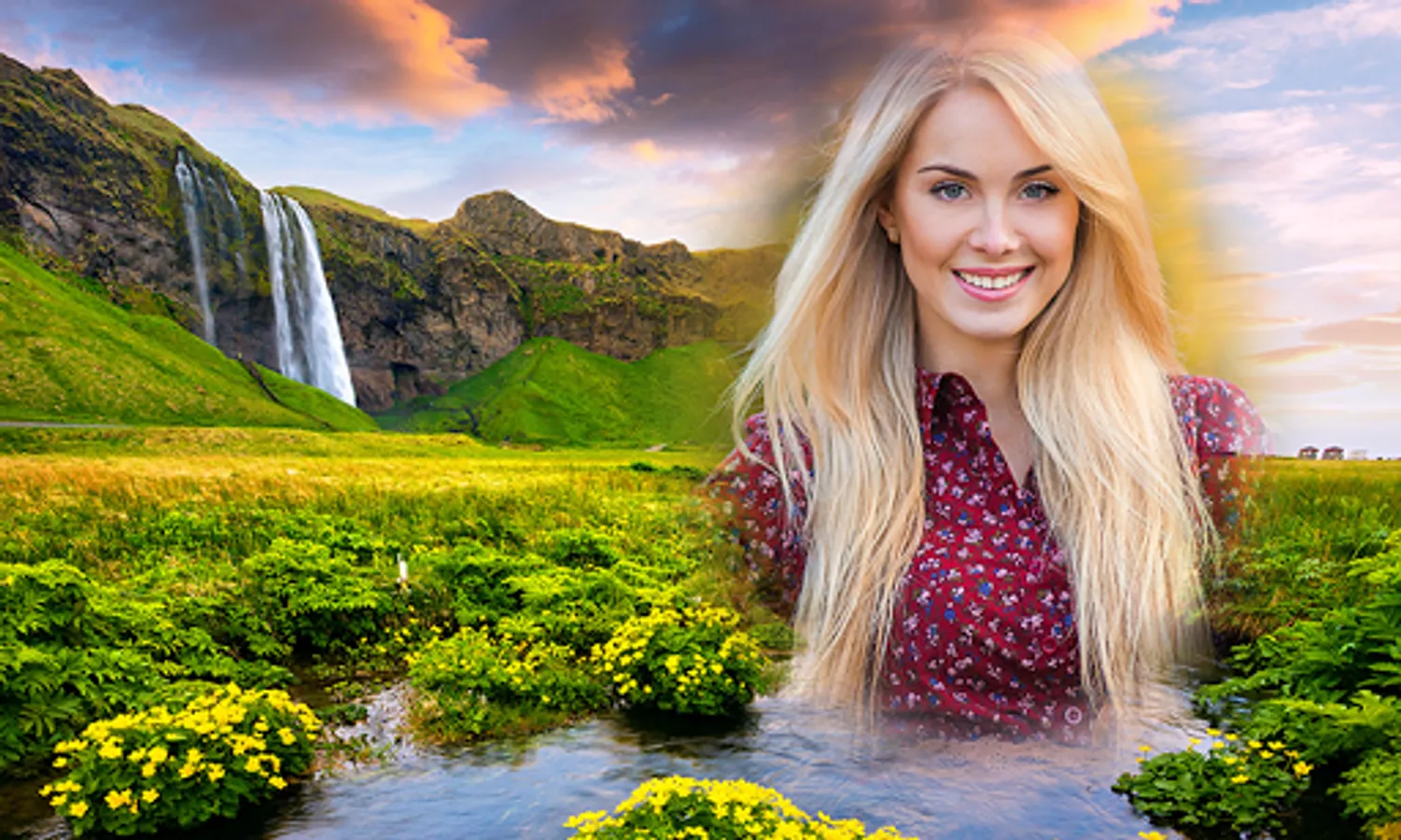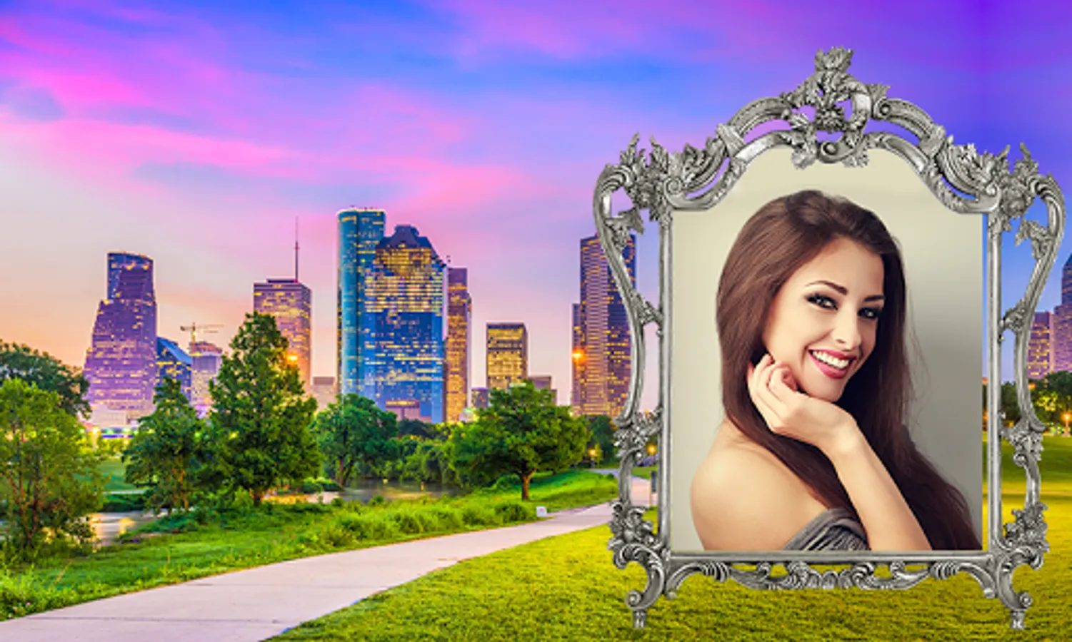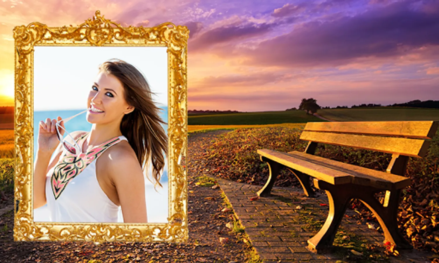 Capture a new image or selfie with your camera and apply a scenic photo frame to it.