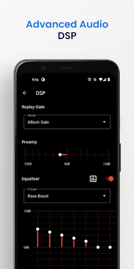The custom built equalizer can handle both 16-bit and 24-bit audio, and follows the design outlined by the S.J Orfanidis paper on Parametric Equalizer design.