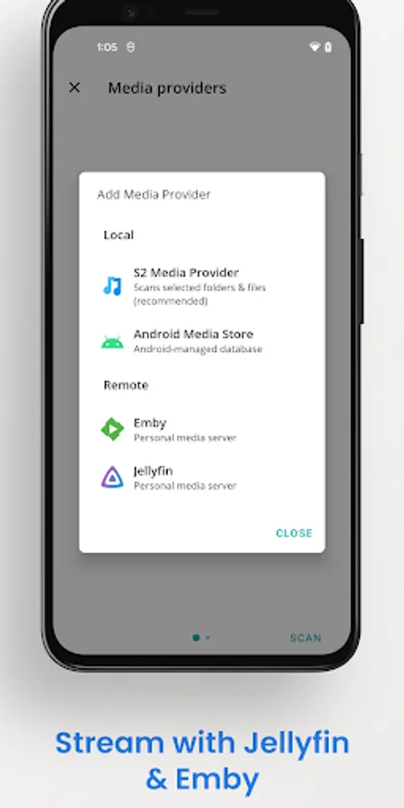 Stream your music via Jellyfin, Emby or Plex, or copy it onto your device for local playback.