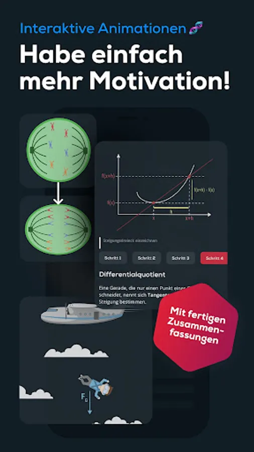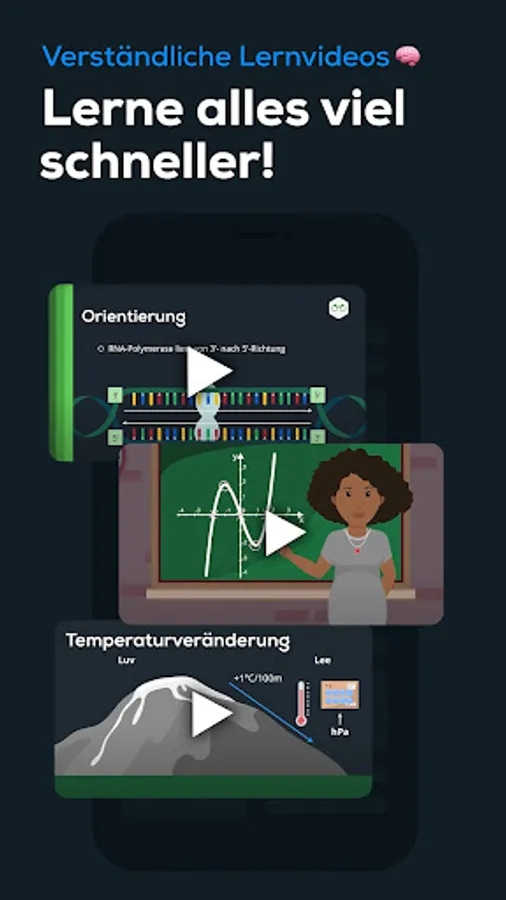 Maybe you already know us from YouTube: We are the makers of the most well-known educational videos in Germany. With the simpleclub app, you learn even better and can use the school material safely in the exam!