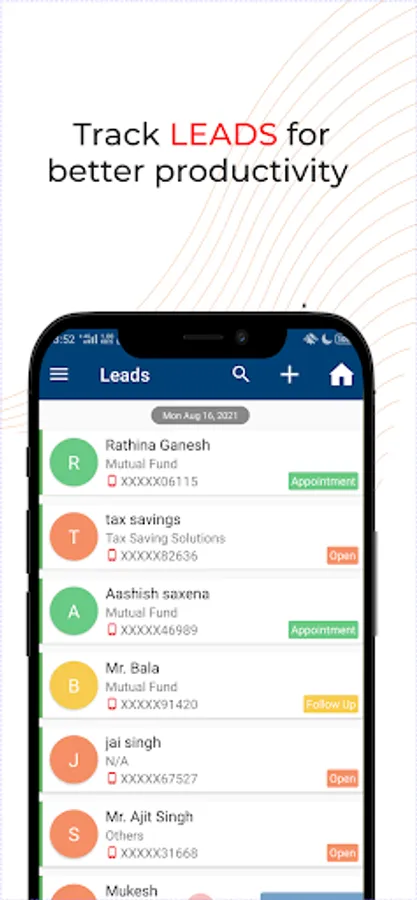 - App notifications will be sent to you for reminders, contact the lead directly in one click