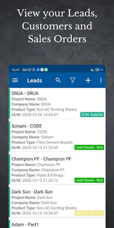 Birla HIL CRM Screenshots