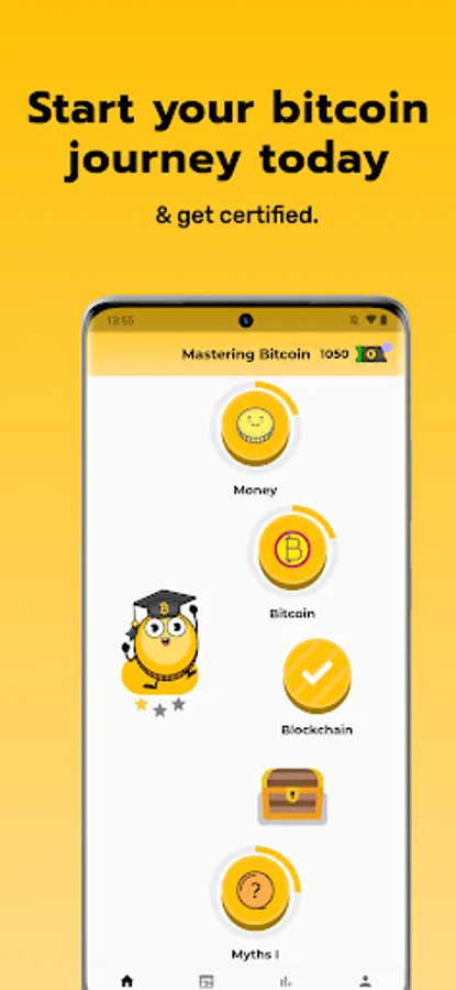This app teaches you sound knowledge in a short time. After completing our lessons, you'll receive a Bitcoin certificate, demonstrating your knowledge.