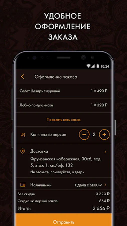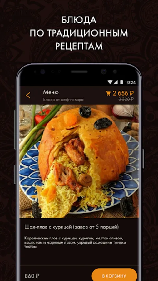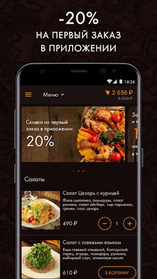 Install a mobile application for Moscow restaurant chain "Baku Boulevard" and enjoy the delicious dishes of Caucasian, Russian and European cuisine at home!