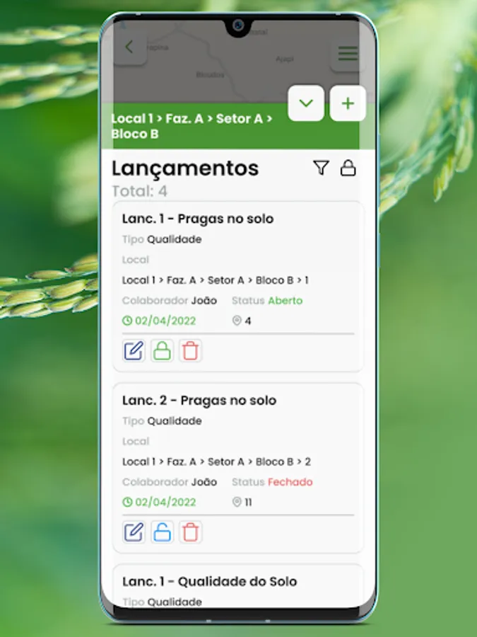 Designed so that employees in a given production area can release data on the quality or pest control of the plantation in question, it delights the user with a modern and easy-to-eye look, with simple access and simple control. .