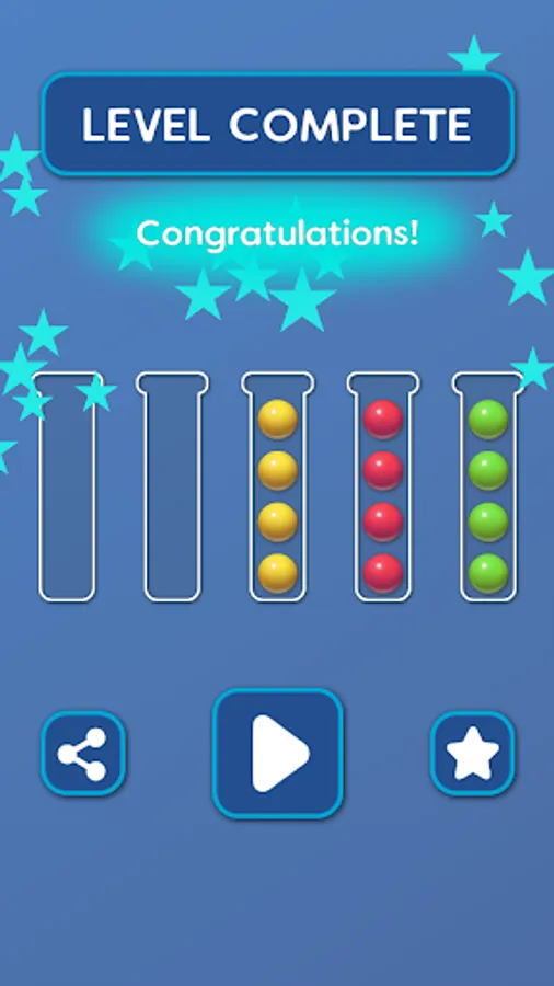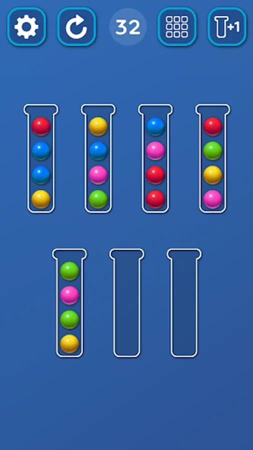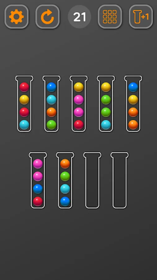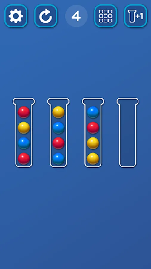 Try to arrange in places and sort the 4 colored balls in the glass tubes until all the same colors stay in the same tube.