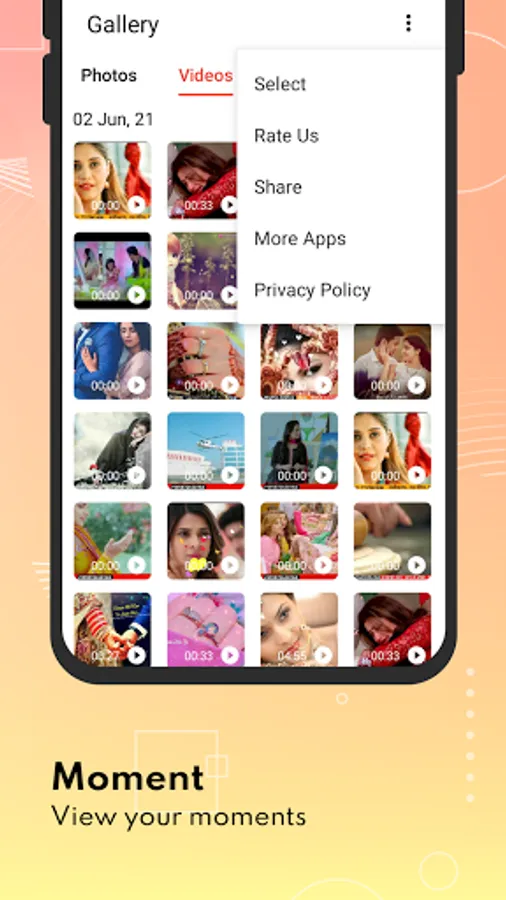 Select photos and videos from Hd Photo Gallery app you can view with high-resolution media inside this gallery app. Gallery provides functionality for by name, photos, videos and albums view. 🎊