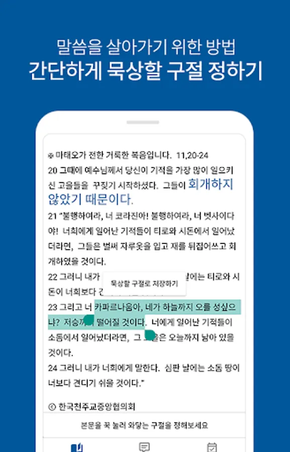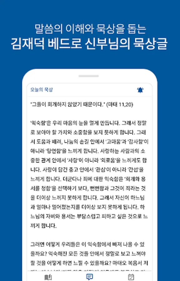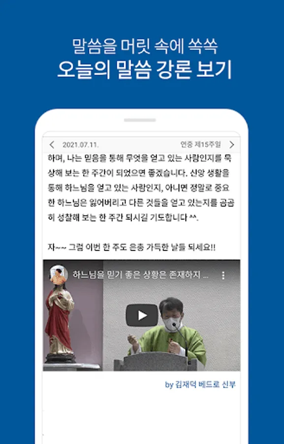 In addition, you can see explanations for important words or phrases in the Bible text, which will help you understand and meditate on the Word. You can also meditate deeply on the Word through the priest's sermons and homily video.