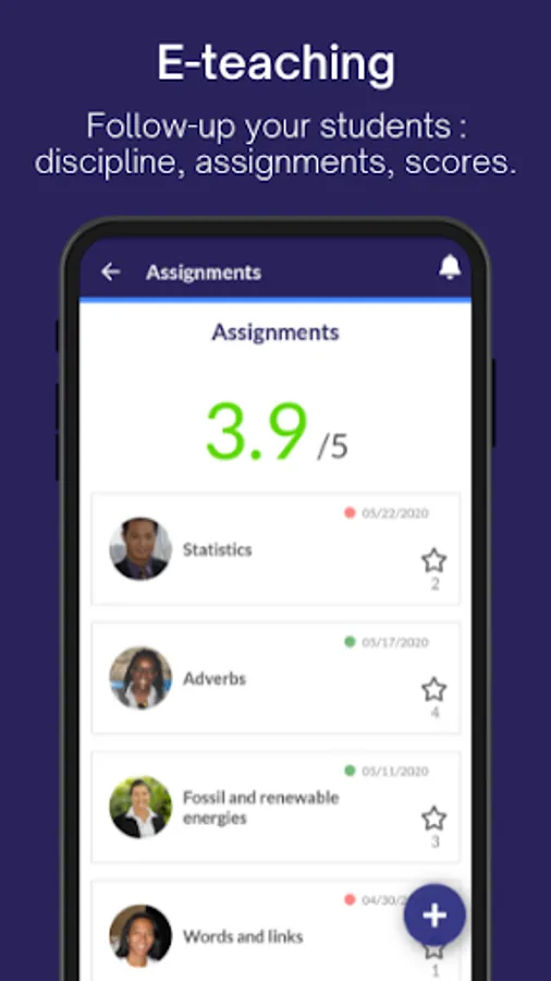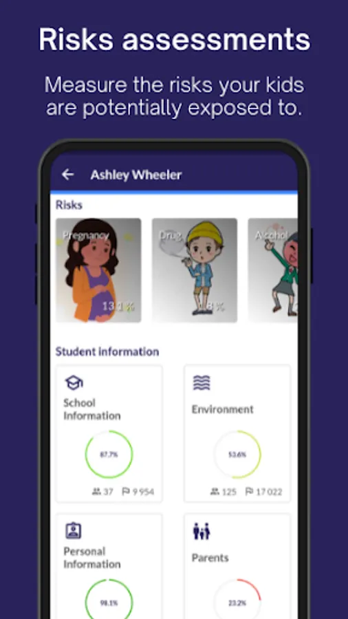 Eska is an application for improving school performance. It gives a figures view of the kids’ work. Eska relies on artificial intelligence which analyzes the student's environmental data and crosses them with his school evolution to predict his chances of success, and assess the risks to which he is potentially exposed to : Alcohol, Drugs, Pregnancy, etc.