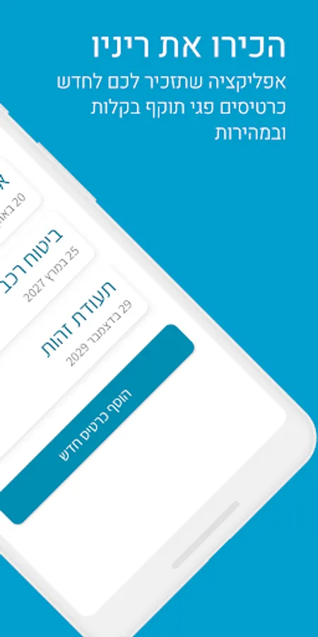 כל מסמך או כרטיס בעל תוקף ניתן להוסיף לאפליקציה וכך תקבלו התראה מיוחדת שלא תזוז לכם מהטלפון עד שלא תראו אותה !