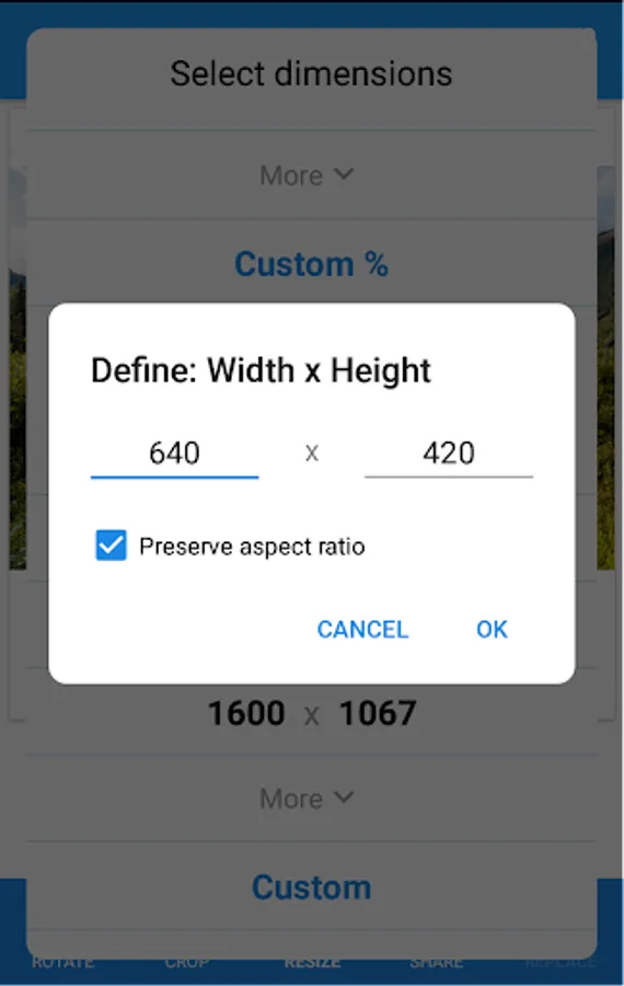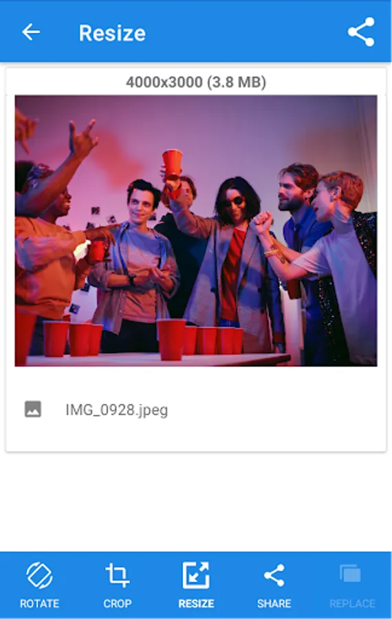 The easy-to-use image resizer app helps you quickly downsize photo size or resize photo resolution. It can be used for text messages, e-mails, Instagram, Facebook, web forms, etc to adjust photo size.