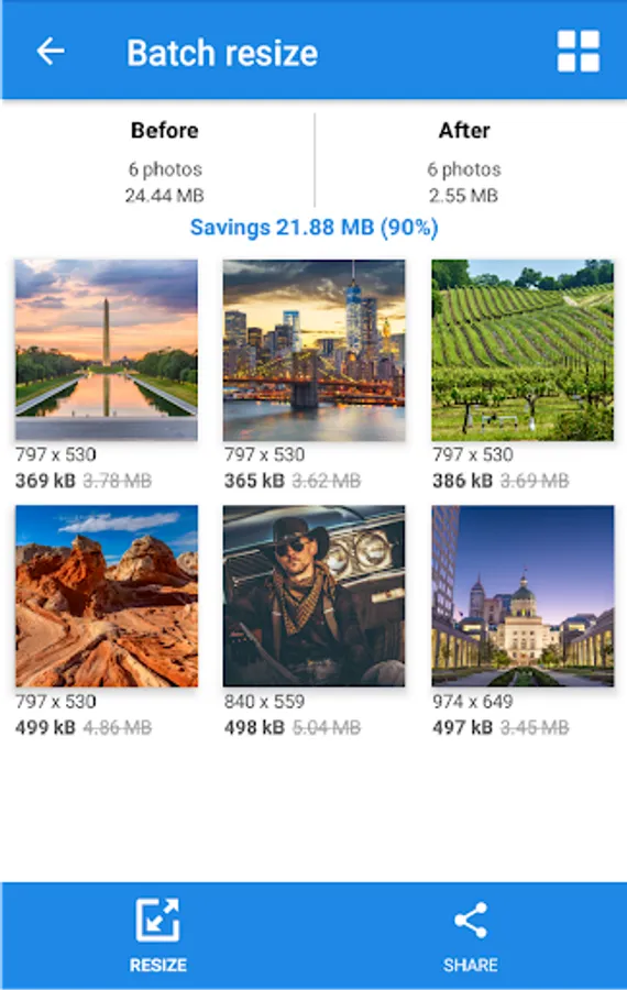 If you want to resize photos quickly, Photo & Picture Resizer is a perfect choice. Photo resizer allows you to easily reduce image size without losing quality. You don’t have to manually save resized pictures, because they are automatically saved in a separate folder titled ’Pictures/PhotoResizer'.