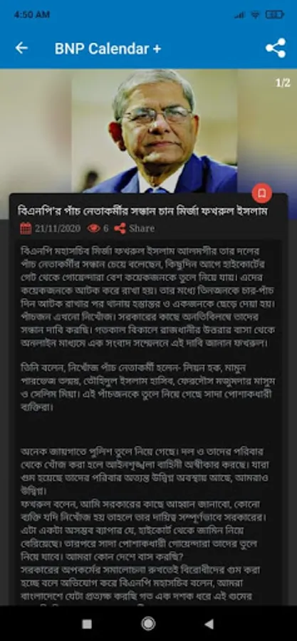 This application published by BNRC (Bangladesh Nationalist Research & Communication) and developed by our dedicated Team NOB (Nationalist Of Bangladesh) to provide different ways to view Calendar features to reminders or popup notifications of political activists of the recent information about BNP (Bangladesh Nationalist Party).