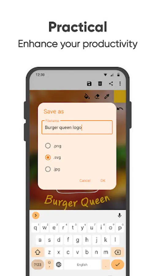 ✔️ This simple sketchbook supports many different formats like PNG, JPG, or SVG vectors