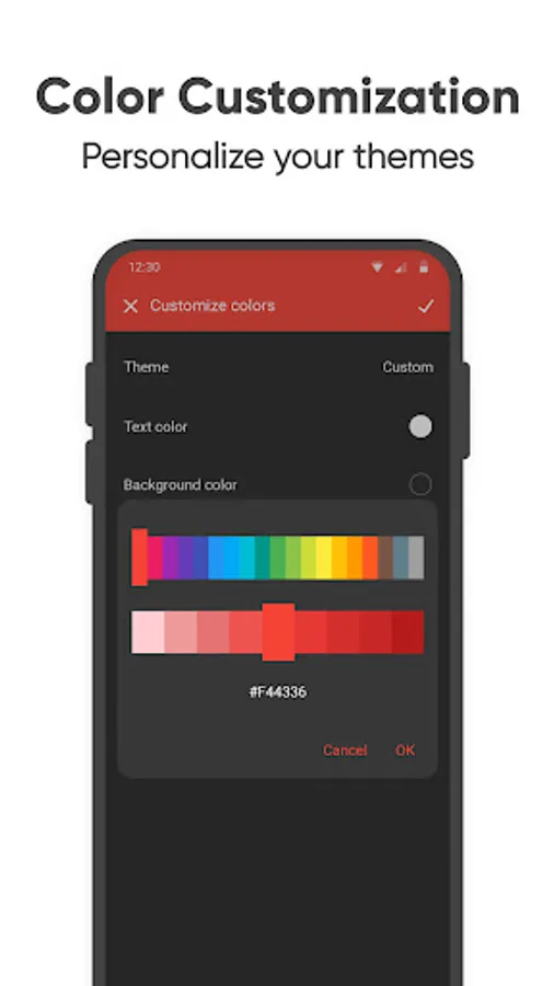 Contains no ads or unnecessary permissions. It is fully opensource, provides customizable colors.