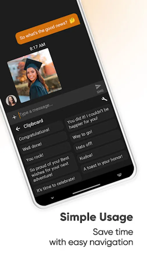 You can create handy clips and pin frequently used ones for easy access. You can toggle vibrations, popups on keypresses or select your language from the list of supported ones.