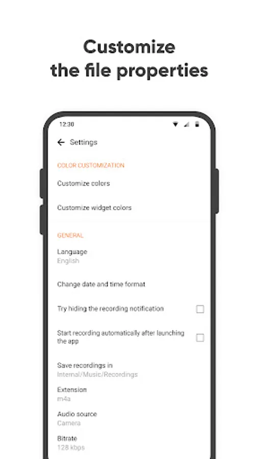 You can optionally hide the top notification during recording to preserve your privacy. It offers a practical and customizable widget for creating quick recordings. This voice recorder gives you freedom to use this app however you want.