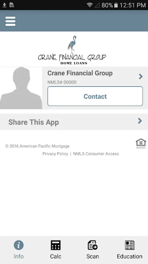 The Crane Financial Group Mobile Application was designed to guide the borrower through the loan process and provide real time updates and communication to all parties involved, ensuring more efficient transactions and on time closings. Whether you are ready to purchase a home, or refinance your current mortgage, the Loan Advisors at Crane Financial Group will help you choose the best loan to match your financial circumstances.