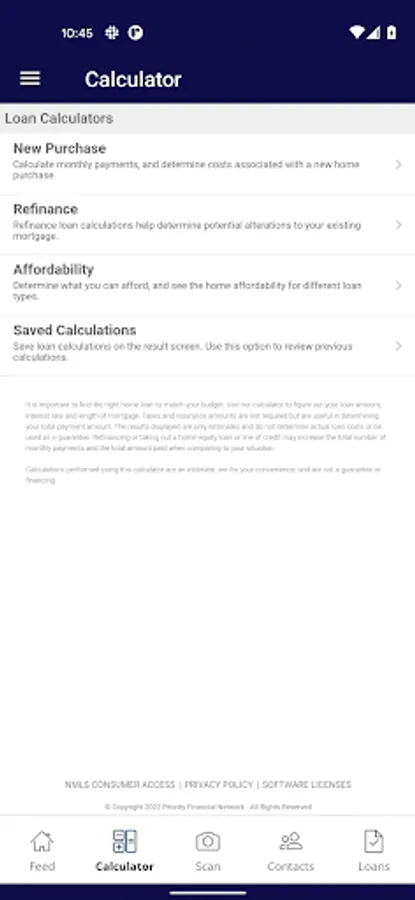• Always have your primary lender contacts at your fingertips, including your Loan Officer, real estate agent, and more.