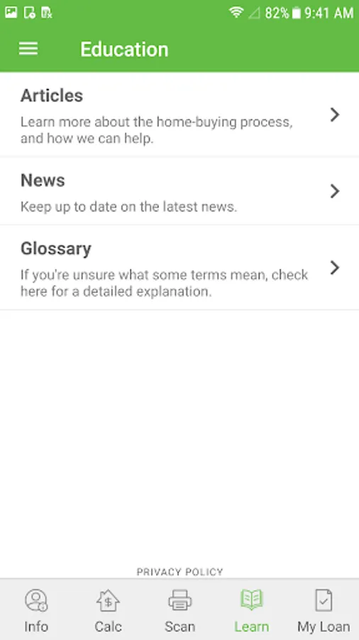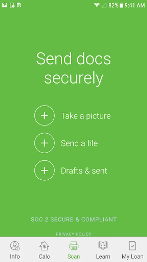 - Loan document list –Tap the camera icon to launch the scanner application to upload important loan documents such as a W-2, 30 days of paystubs, 2 months of bank statements, 2 years of federal tax returns, and driver’s license.