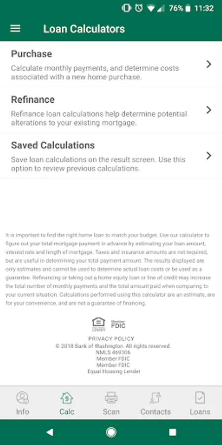 Whether you are a homebuyer looking to purchase a home, a current homeowner interested in refinancing, or a real estate agent or builder hoping to speed up the process for your clients, the Bank of Washington Mortgage App has features to benefit you.