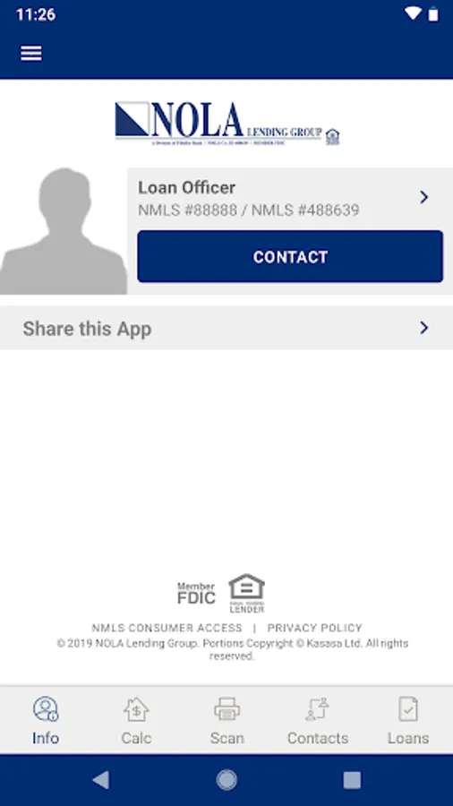 • Easily access contact information for your NOLA Lending Group Loan Officer and share this information with your family and friends.