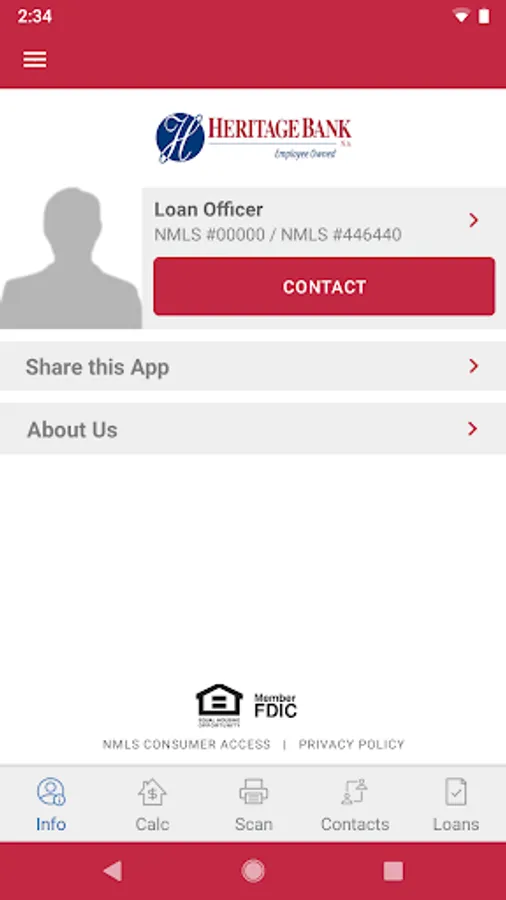 • Easily access contact information for your Heritage Bank Loan Officer and real estate agent and share this information with your family and friends.