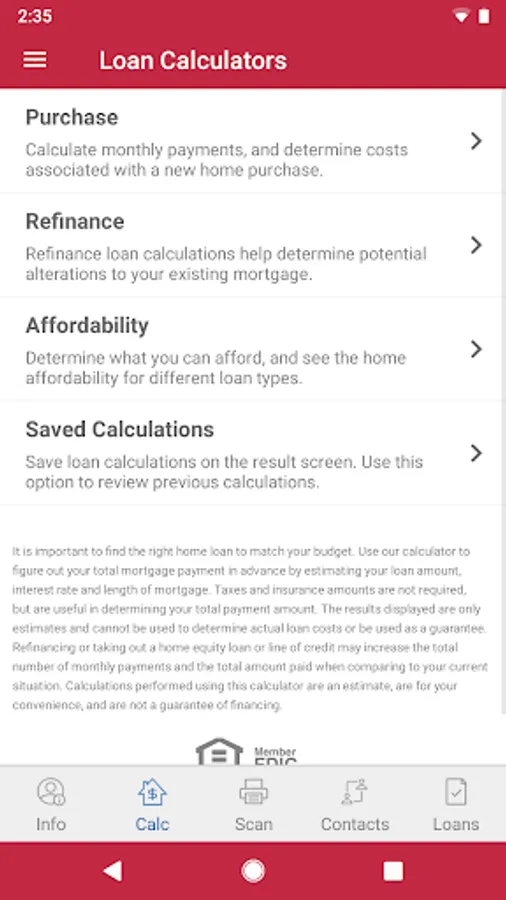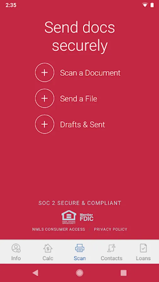• Calculate the possible savings (or cost) of refinancing your mortgage. • Use your phone for an easy way to get your documents to your loan officer by simply snapping a picture of the documents and uploading them. This saves a lot of time and expedites the approval process.