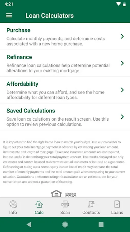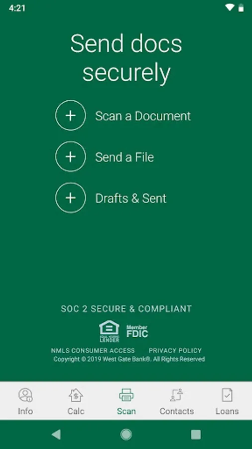 •Calculate the possible savings (or cost) of refinancing your mortgage.•Scan in required documents on your phone and upload them quickly to expedite the loan approval process.
